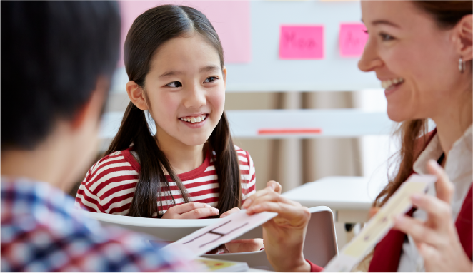 まずは会話を聞き取ることから各技能の習得に広げていき、途中でつまずかず得意科目となるように小学生から英語の指導に取り組みます。