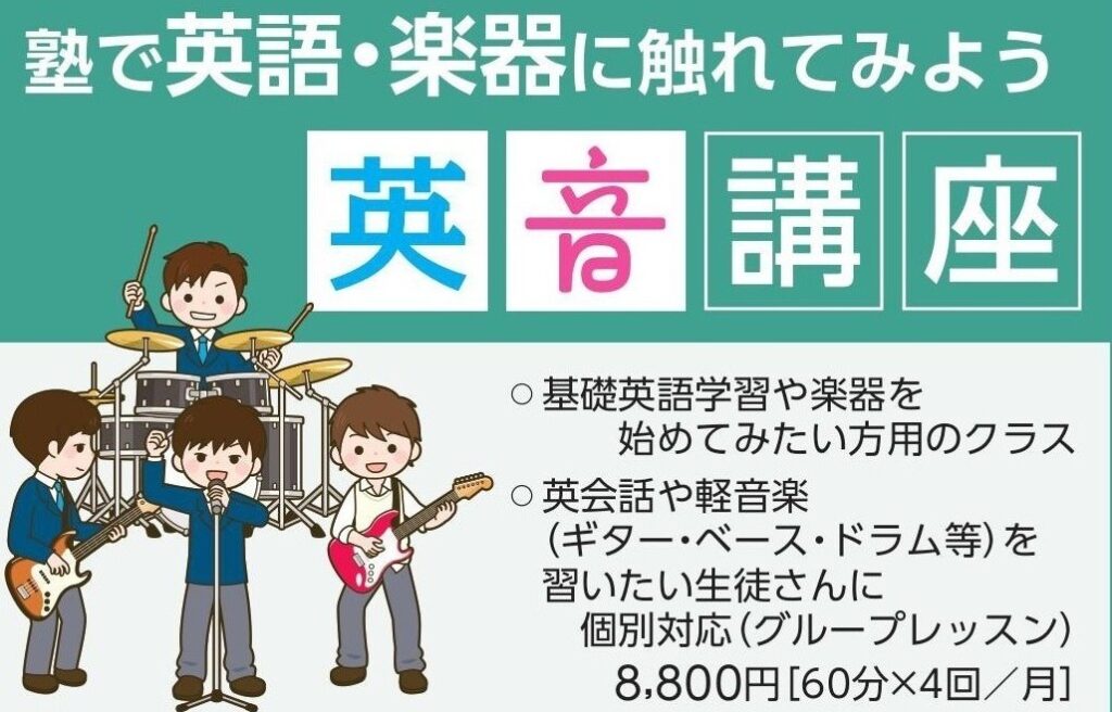 国語、英語、数学、社会、理科の学科指導はもちろんですが、カジュアルな英語